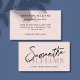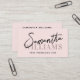 A modern minimalist business card with a blush pink background and elegant script typography. The design is clean and simple, focusing on stylish lettering and a calm, neutral color palette. It gives a warm, professional, and sophisticated look that works well for personal brands and creative businesses. Modern script typography name elegant feminine business card ideal for event planners, hair stylists, make up artists, bloggers and other professionals. Easy to edit font style and background colors.