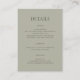 Simple modern details enclosure card matching the monogram wedding invitation with minimal text and contemporary design, featuring a sage green background and text in warm black-gray. This modern wedding invitation enclosure card is part of my Mix and Match Wedding Stationery Collection, featuring all matching background and font colors - simply mix and match your monogram wedding invitation with other wedding stationery in unique color themes such as pastel and earth tones.