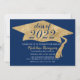 Modern Simple Navy Blue Gold Graduation Hat Invitation