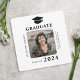 Photo, name, school, and class of year personalized minimalist simple black and white unique graduate typography script printable square announcement card with grad hat.