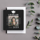 Photo, name, school, and class of year personalized minimalist simple black and white unique graduate typography script printable square announcement card with grad hat.