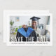 Share the joyful news of an upcoming graduation party with modern custom photo save the date invitations. The picture and wording on this template are simple to personalize with graduate name, class year and other announcement details of your choice. All colors can also be customized using the Zazzle design tool. The black and white design features modern minimalist typography, bold script calligraphy and one favorite photo, such as a senior picture or image from the commencement ceremony. These stylish graduation cards are an elegant way to share a special day celebration with family and friends. Congratulations to the graduate!