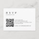 Modern QR Code Wedding RSVP card featuring a simple, minimalist layout with your QR code and the instructions beside in left alignment. The back has your favorite photo. All text is in black over a white background and may be changed to any color you wish by clicking the "customize" button.