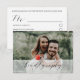 Introducing our elegant RSVP response card, designed with a personalized touch to make your wedding planning seamless. This sophisticated card features your customized photo, adding a personal and heartfelt element. The sage green accents provide a touch of natural elegance, perfectly complementing the simple yet stylish design. Included is a convenient QR code that links directly to your wedding details, making it easy for your guests to respond and access important information. This RSVP card combines practicality with beauty, ensuring your guests can effortlessly share in your special day.