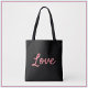 Beautiful, minimalist tote bag advertising the most important thing of all: love. Striking pink/black color combination.