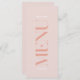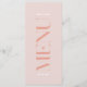This Wedding Menu in light pink colors will be great for modern Wedding. It features bold letters on the front side of the card. Menu is doublesided, and have editable list of dishes on the back side. You can personalize this menu with the names and the date of event. You also can change background color, fonts and font colors if needed, just click on "Customize further".