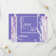 Announce your special day with elegance using our Horizontal Lavender Save the Date Design. A wavy purple frame beautifully frames a horizontal photo of the couple in a lavender-filled area. In crisp white text, "Save the Date" along with the couple's names adds a classic touch. This simple design seamlessly combines the tranquility of lavender with a timeless aesthetic, creating a captivating save-the-date announcement.