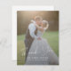Simple minimalist elegant chic calligraphy script dark overlay text personalized wedding thank you card with two photos, your custom text, and signature.