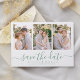 Modern script "save the date" with 3 couple's photo, simple and elegant. Great photo letterpress save the date cards for modern wedding and other events.
