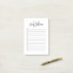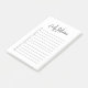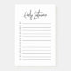 Modern simple to do list personalized note pad with name. Casual trendy script name header with 12 task lines with check boxes. Black text on a white background.