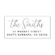 An elegant return address stamp with your family name in a handwriting-style script, followed by your return address or contact details in classic serif typography. This design can be used for invitations, greeting cards, holiday mail, and more! Edit all of the text by changing the details in the template boxes. Choose from a variety of housing and ink colors to match your preference. Feel free to message me with any questions - just note we can't modify an existing order. View the collection link on this page or visit our store for more address stamp designs!