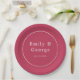 Modern Simple Script Viva Magenta Stylish Wedding Paper Plates