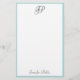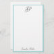 Modern Simple Template Handwritten Monogram Name Personalized Blue Green White Stationery Paper.