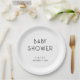 Modern Simple Text Black and White Baby Shower Paper Plates