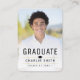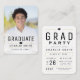 Modern and minimal typography graduation announcements with photo, fun graduation party invitation on the back in black gold and white, Custom it with your own photo and party information.