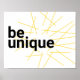 Graphic design of a saying "Be Unique" with lines in yellow and black colors. Urban typography.