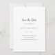 Modern wedding save the date featuring a simple and minimal design with a thick handwritten script and serif fonts.