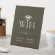 Make Wifi access easy and stylish with this White Wifi Password Pedestal Sign in coffee brown background. Perfect for Airbnb hosts, vacation rentals, guest rooms, cafés, salon, studio and offices, this minimalist Wi-Fi wall sign helps guests connect quickly.