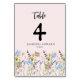 Modern Simple Wildflower Floral Wedding Table Number