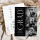 Stylish graduation party invitation postcards featuring the graduate's three photos located to the right of the design in a vertical layout. "Grad" is displayed in white, modern art deco lettering with a black background. Personalize the modern photo graduation party invite by adding the graduate's name, graduation year, and school name. The postcard reverses to display your return address and graduation party details. Perfect for both high school and college graduations!