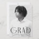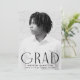 Celebrate your graduate's achievement with this sleek and simple graduation announcement. Featuring the graduate's vertical photo, the word "Grad" is showcased in bold black, modern art deco lettering, creating a stylish and contemporary design. Personalize the front of this single-photo graduation announcement by adding the graduate's name, school, and graduation year. The reverse side features a sophisticated black and white geometric swirl pattern, offering an elegant finishing touch. Perfect for high school or college graduates, this customizable announcement is the ideal way to share this special milestone with family and friends.