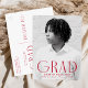Simple graduation party invitation postcard featuring the graduate's vertical photo with "Graduate" displayed in red, modern art deco lettering. Personalize the front of the photo graduation party invite by adding the graduate's name, school, and grad year. The postcard reverses to display your return address and graduation party details. The postcard invite is perfect for both high school and college graduates!