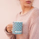 This modern coffee mug features a trendy geometric herringbone pattern in sky blue, gray, and white. Personalize it with a name to make a great birthday gift. For color customization: click Personalize -> Customize further, under the Layers tab click on pattern images/text/background to change their color.