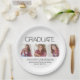 Modern 3-photo graduation party paper plates with sleek lettering and rounded edges on your photos. Personalize with your name, school name, and graduation year. Perfect for high school or college graduation parties. Contact me for assistance with your customizations or to request additional matching or coordinating Zazzle products for your graduation.