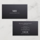 Modern and professional monogram business cards featuring trendy minimalist typography. Add your contact information to the back. Includes four social media icons and a field for your username.
