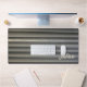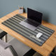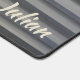 A bold sophisticated desk mat with modern monochromatic stripes in smokey shades of gray personalized with a Name.