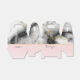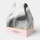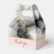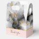 Wedding thank you favro boxes with an elegant and modern marbled pattern. White, black and smoky gray marble with thin ribbons of faux-gold swirls throughout the pattern. A light pink gradient background beneath the marbled pattern, with your Thank You on the front and personalized text on the back.