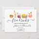 Casual cool save the date, free drinks, and we're getting married too! with this pastel hand painted fruity cocktails, olives and crisps illustrations.