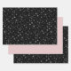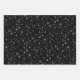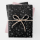 Modern Snowflake Black Pink Pattern Christmas Wrapping Paper Sheets. Beautiful white snowflakes in different sizes and shapes on black background.