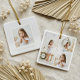 Celebrate the magic of the holiday season with our custom photo ornaments. This modern, elegant design features a minimal three-photo collage grid, with a stylish white snowflake monogram at the center. Personalize with your own monogram for a truly unique keepsake. The reverse side showcases a single photo framed by a soft light grey ombre background, with customizable text for your name or message. Adjust the font, text size, color, and layout to perfectly match your personal style.