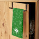 Modern Snowflake Pattern on Green Monogrammed Kitchen Towel