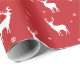 Modern Snowflake Reindeer Red Holiday Pattern Wrapping Paper