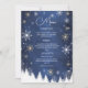 Modern Snowflake Winter Navy and Gold Wedding Invitation