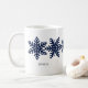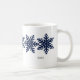 Simple modern Christmas Holiday coffee mug featuring a row of solid color holiday snowflakes. Minimalist typography. Clean simple design. All text areas personalizable. Contact for assistance in personalizing or customizing to your individual wishes. Happy holidays!