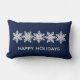 Simple modern Christmas Holiday pillow featuring a row of silvery white holiday snowflakes. Minimalist typography. Clean simple design. All text areas personalizable. Contact for assistance in personalizing or customizing to your individual wishes. Happy holidays!