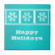 Dazzling and stylish Modern Snowflakes Tile in turquoise featuring a trio of snowflakes, a polka dot border, and a metallic look background. This elegant and seasonal winter themed tile will add holiday flair to any decor. Customize this design with your own text.