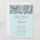 Modern Soft Blue Gray Floral Swirl Baby Shower Invitation