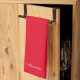 Modern Christmas Red Solid colored background. TEMPLATE for the name in white script. A Modern kitchen towel featuring an easy-to-personalize template, for the perfect custom kitchen.