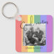 This modern photo key chain has a minimalist style, the design features your favorite photograph, Soulmates in a modern script font and personalized with your names in black text, over a rainbow background. The font styles, sizes and color can be changed if preferred by clicking on the customize further link after personalization.