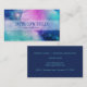 This modern card has a contemporary watercolor background reminiscent of outer space nebula in shades of deep blue, aqua and bright pink. A modern line work geometric shape is set against it in a pale blue and a stripe of frosted blue allows for text on the front side to be fully readable. The back side is printed in deep blue and has space for more text customization, just use the easy provided templates. Perfect for yoga instructors, new age businesses, and the like.