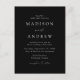Minimalist, modern wedding invitation postcard featuring your wedding details in white lettering with calligraphy script accents on a black and white speckled background. Personalize the back of the chic wedding invitation postcard with your return address, desired response date, wedding website, and instructions for guests using the text templates provided. Designed to coordinate with our Modern Elegance wedding collection.