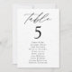 Elegant wedding seating chart featuring "table" displayed in black calligraphy script with the table number and guest names shown below on a white background with subtle black specks. The design repeats on the back. To order the table number seating chart, edit each card with the table number and guest names and add it to your cart. Designed to coordinate with our Modern Elegance wedding collection.