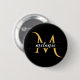 Modern Split Monogram Gold Black Custom Name Button