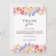 Elegant modern spring summer hand painted flowers watercolor with pretty garden wildflowers and brush script wedding thank you card with a modern calligraphy typography with pink, white, purple, blue, red and orange flowers with greenery. Add your wedding photo at the back