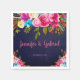Modern Spring Pink Floral Navy Blue Wedding Napkins