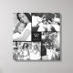 4 photo collage arranged in a minimalist layout with the center square featuring the first letter / alphabet of your family's name wall print.